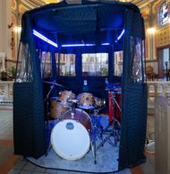 Since the booth was designed to capture the “worst case” wide frequency bandwidth inherent in percussion instruments, it also excels for recording any instrument (guitars/piano/sax and vocals). Replace the drums with a couch, floor lamp, and coffee table and you’ve got the perfect setting for acoustic recording.
