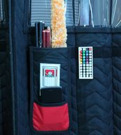 Configurable removable internal pouches and “pouch bus” provide storage for drum sticks, cell phones, sheet music or even beverages. The pouches can be placed anywhere on the bus.